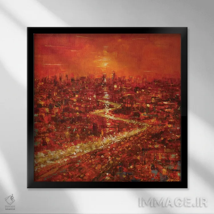 براساس پالت گرم اثر، قاب تیک گرم (چوبی) پیشنهاد اول است و مشکی مات (فریم متوسط) مکمل. برای سفارشهای پروژهای با ابعاد و قابهای اختصاصی با ایماژ در تماس باشید.