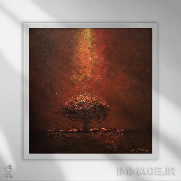 براساس پالت گرم اثر، قاب تیک گرم (چوبی) پیشنهاد اول است و مشکی مات (فریم متوسط) مکمل. برای سفارشهای پروژهای با ابعاد و قابهای اختصاصی با ایماژ در تماس باشید.