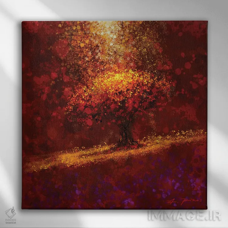 براساس پالت گرم اثر، قاب تیک گرم (چوبی) پیشنهاد اول است و مشکی مات (فریم متوسط) مکمل. برای سفارشهای پروژهای با ابعاد و قابهای اختصاصی با ایماژ در تماس باشید.