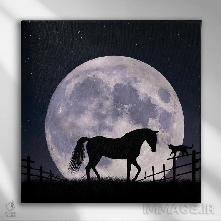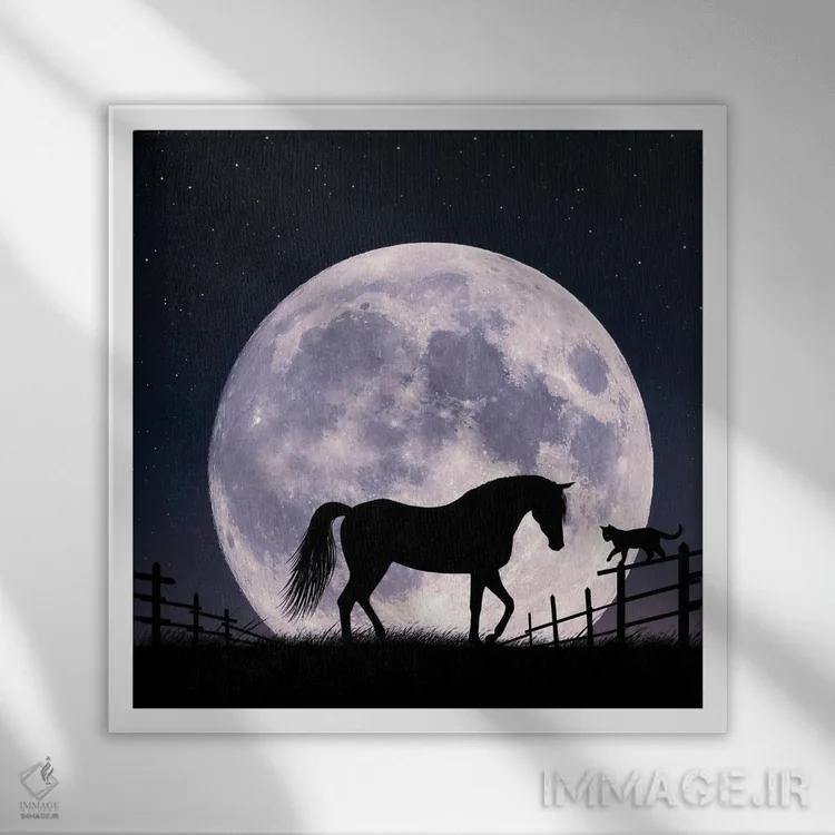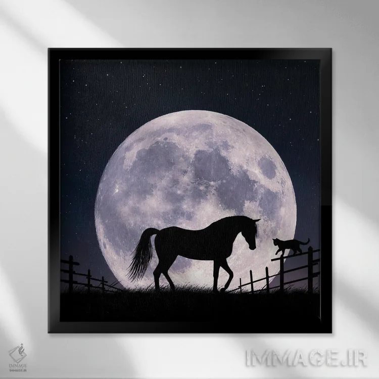 تابلو اسب و ماه اثر عبدالله ایویندار - نمای قاب‌دار مشکی