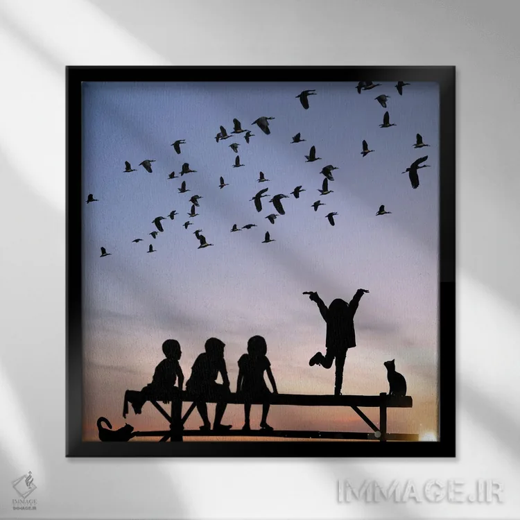تابلو کودکان شاد اثر عبدالله ایویندار - نمای قاب‌دار مشکی