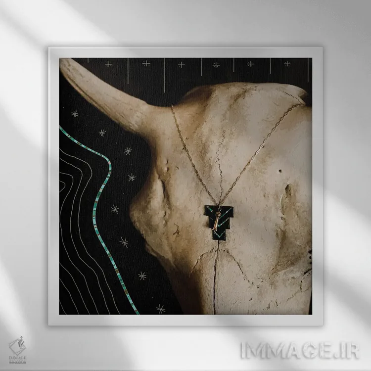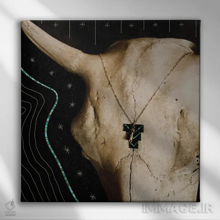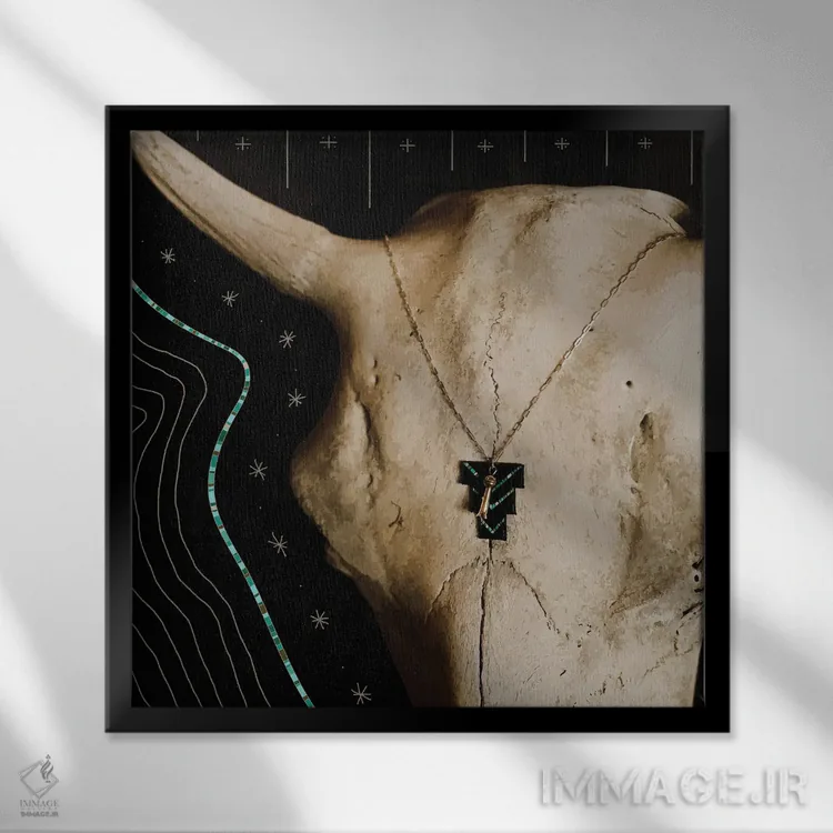 تابلو جمجمه بوفالو و فیروزهای اثر آلی فالکن