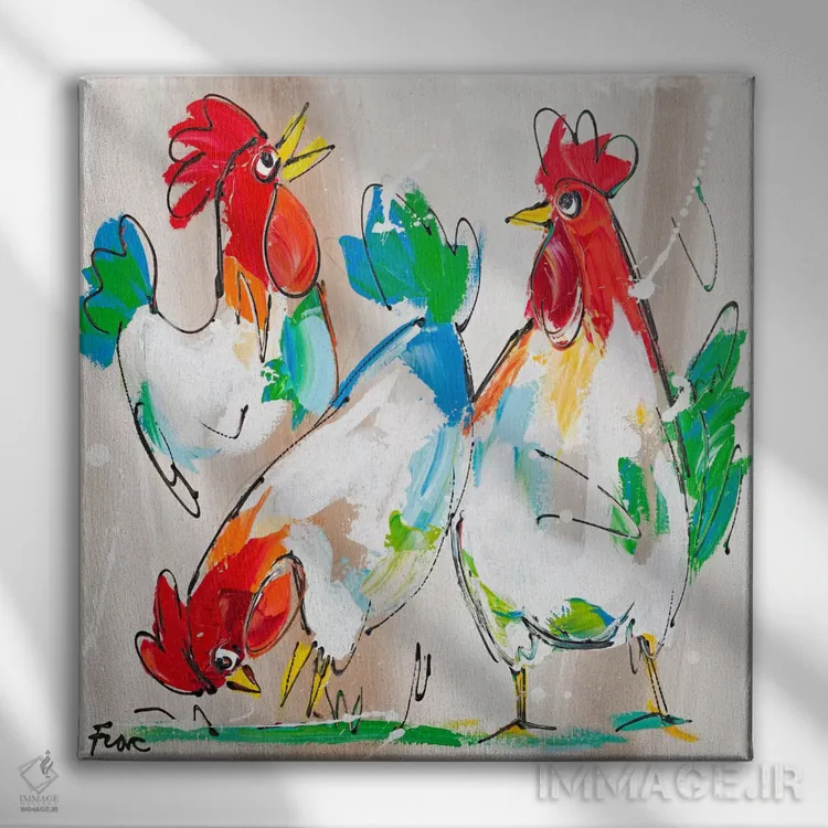 تابلو خروسها در حال صحبت اثر آرت فیوره