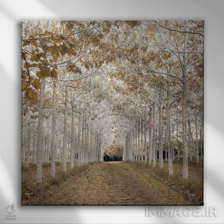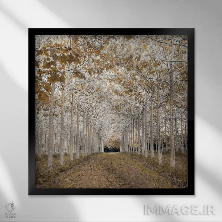 براساس پالت گرم اثر، قاب بلوط روشن (چوبی) پیشنهاد اول است و استخوانی ملایم مکمل. برای سفارشهای پروژهای با ابعاد و قابهای اختصاصی با ایماژ در تماس باشید.