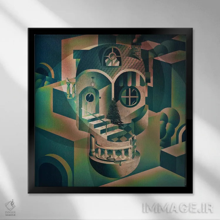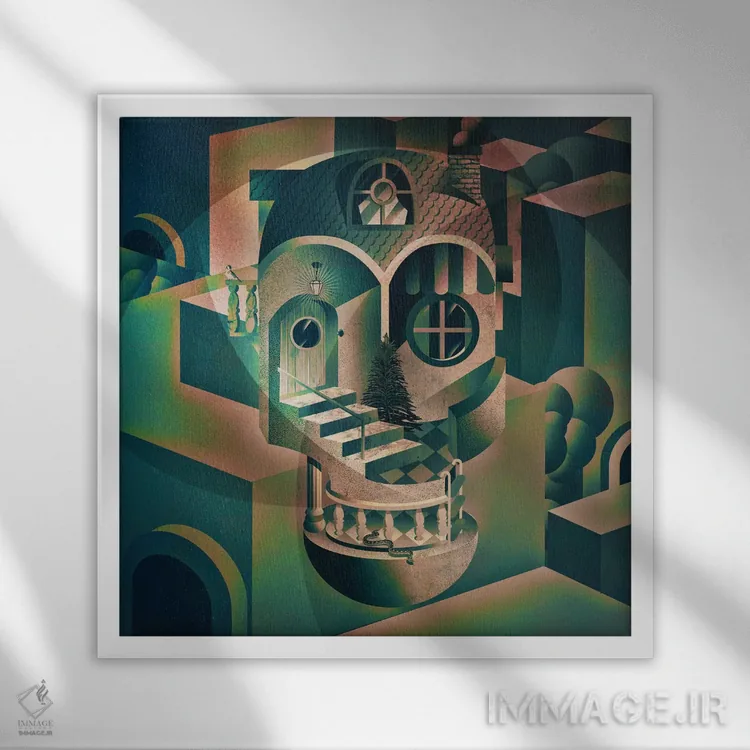 تابلو آرمان‌شهر اثر علی گولچ - نمای قاب‌دار سفید