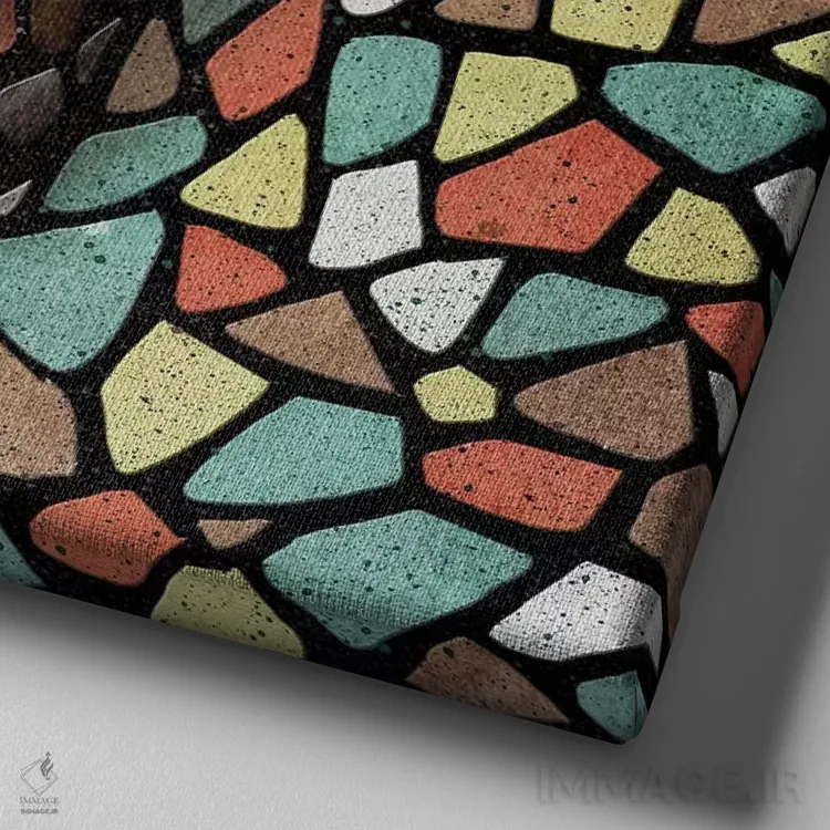 تابلو جمجمه موزاییک رنگی اثر علی گولچ - نمای نزدیک بافت بوم