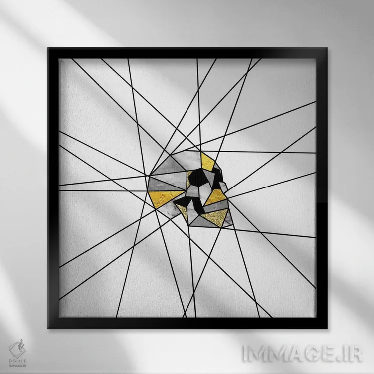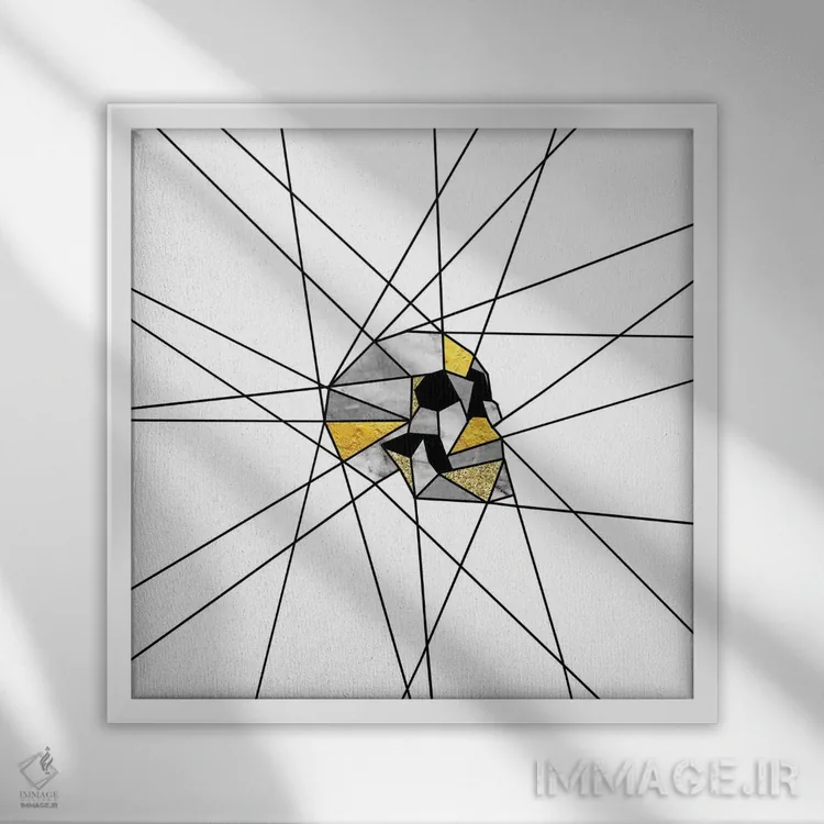 تابلو قطعه روی زمینه سفید، مربع اثر علی گولچ - نمای قاب‌دار سفید