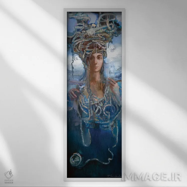 براساس پالت ترکیبی اثر، قاب تیک گرم (چوبی) پیشنهاد اول است و مشکی مات (فریم متوسط) مکمل. برای سفارشهای پروژهای با ابعاد و قابهای اختصاصی با ایماژ در تماس باشید.
