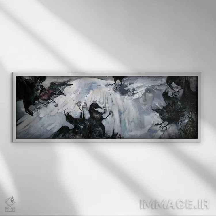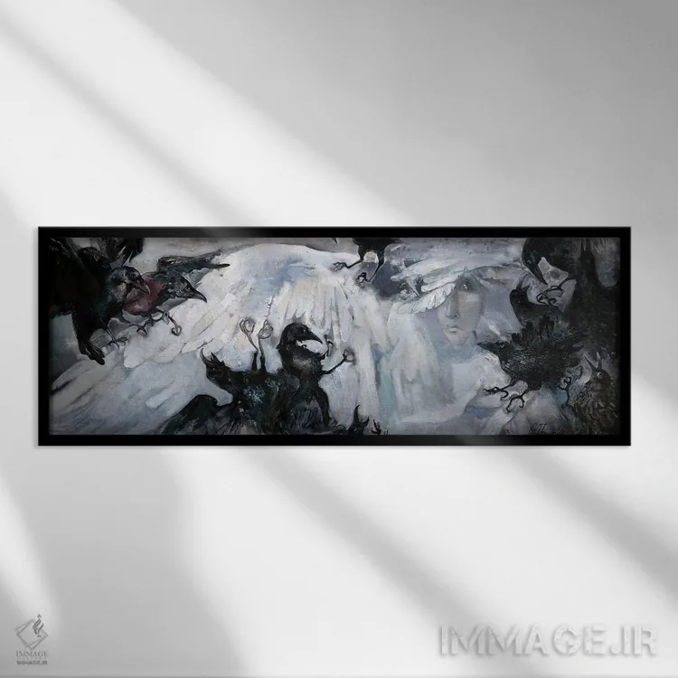 تابلو حمله به فرشته اثر آناستاسیا گریگوریوا - نمای قاب‌دار مشکی