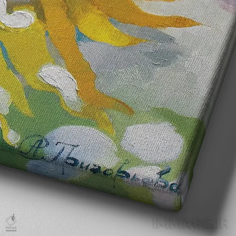 برای فضاهایی که به لطافت نیاز دارند، «روز زمستانی گل آفتابگردان تابستانی» اثرِ «آناستاسیا گریگوریوا» تعادل رنگیِ لطیفی به چیدمان میدهد؛ برای کنار میز آرایش یا کنسول انتخابی خوشسلیقه است. همیشه بهروز میماند و با فصلها خوب کنار میآید.