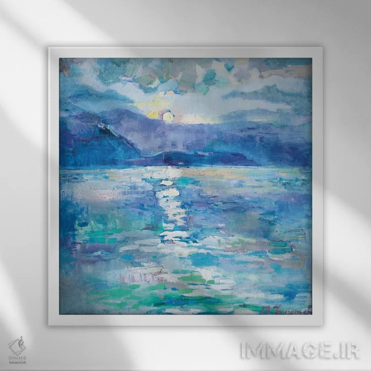 براساس پالت سرد اثر، قاب سفید مات (فریم باریک) پیشنهاد اول است و نقرهای برسخورده (متالیک) مکمل. برای سفارشهای پروژهای با ابعاد و قابهای اختصاصی با ایماژ در تماس باشید.