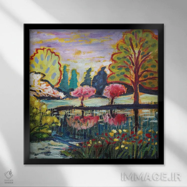 براساس پالت ترکیبی اثر، قاب تیک گرم (چوبی) پیشنهاد اول است و مشکی مات (فریم متوسط) مکمل. برای سفارشهای پروژهای با ابعاد و قابهای اختصاصی با ایماژ در تماس باشید.