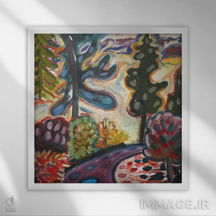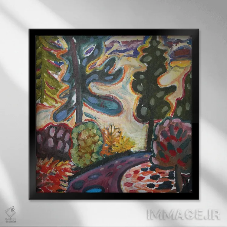 براساس پالت ترکیبی اثر، قاب تیک گرم (چوبی) پیشنهاد اول است و مشکی مات (فریم متوسط) مکمل. برای سفارشهای پروژهای با ابعاد و قابهای اختصاصی با ایماژ در تماس باشید.