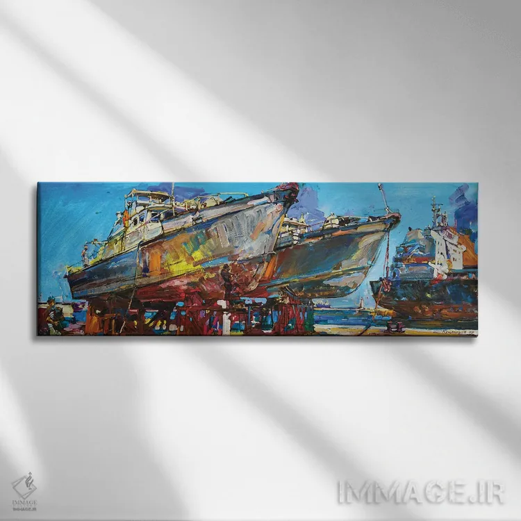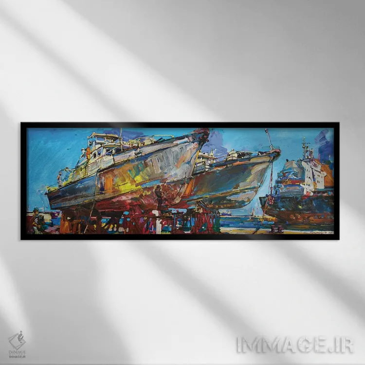 «کشتیهای در حال تعمیر» اثرِ «اندریی کوتساچنکو» با رویکرد معاصر، برای دفتر کار و خانههای مدرن انتخابی مناسب است؛ موضوعِ این اثر هم هویت میدهد.