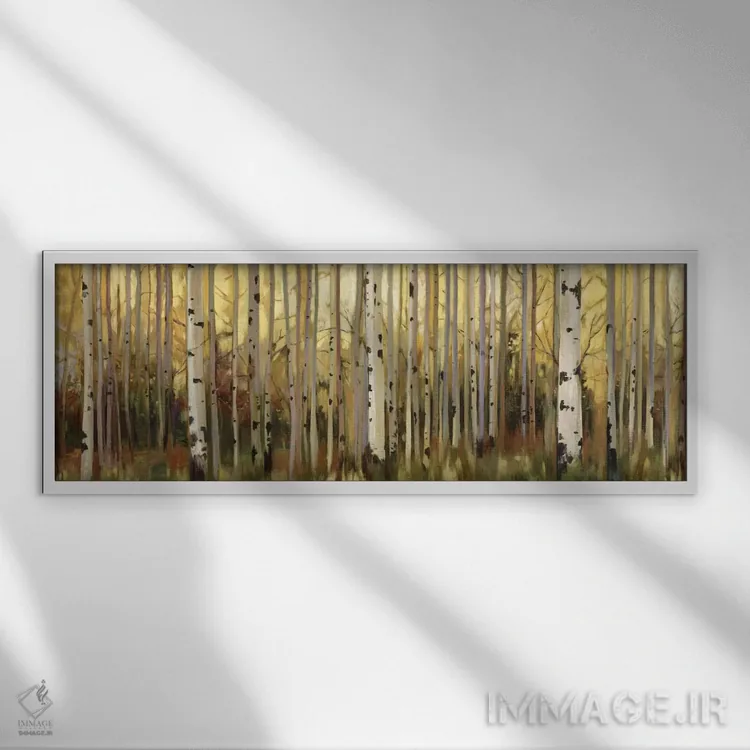 اگر دوست دارید دیوار روشنتر و آرامتر دیده شود، «نور جنگل» اثرِ «آلیسون پیرس» فضا را نرمتر و مهماننوازتر میکند، برای فضای غذاخوری گزینهٔ مناسبیست. فضا را شلوغ نمیکند؛ فقط لطیفترش میکند.