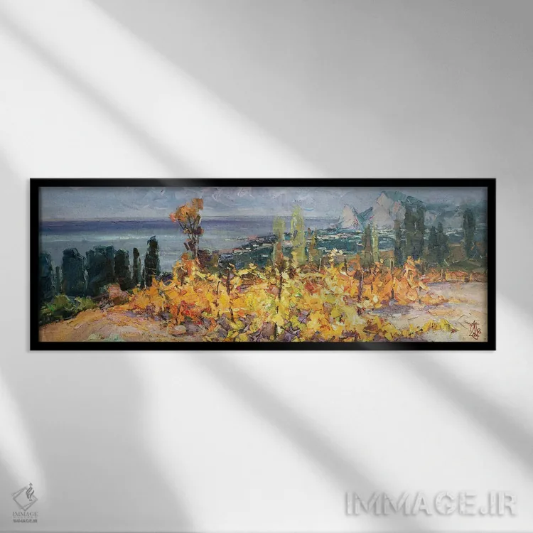 براساس پالت گرم اثر، قاب تیک گرم (چوبی) پیشنهاد اول است و مشکی مات (فریم متوسط) مکمل. برای سفارشهای پروژهای با ابعاد و قابهای اختصاصی با ایماژ در تماس باشید.