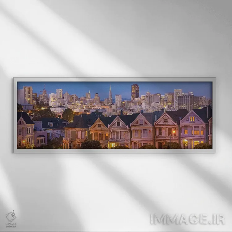 «سانفرانسیسکو، کالیفرنیا، خانههای ویکتوریایی و شهر در غروب» اثرِ «بیل باخمن» انتخابیست برای زمانی که در دکور، مثل یک امضای ظریف عمل میکند؛ برای دیوارهای گالریوار و ترکیب چند اثر انتخابی عالی است. فضا را شلوغ نمیکند؛ فقط دقیقترش میکند.