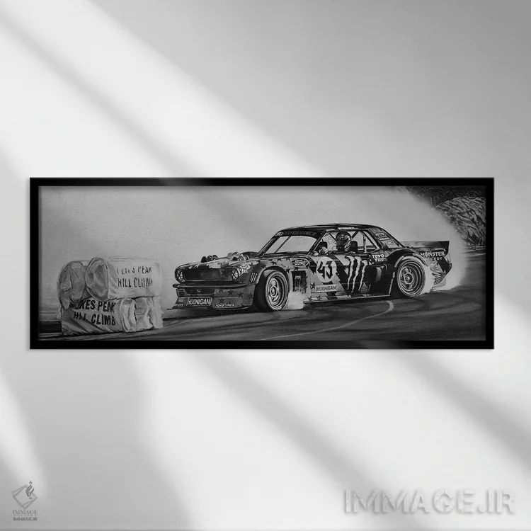 تابلو ماشین دریفت هونیکورن (سیاه و سفید) اثر جی.بلو استودیو (استودیو هنری)