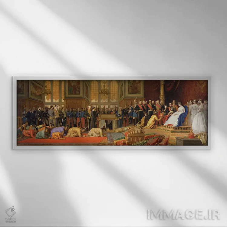 تابلو 27 June 1861,پذیرایی از سفیران سیامی توسط امپراتور ناپلئون سوم در کاخ فونتنبلو، ۲۷ ژوئن ۱۸۶۱ اثر ژان لئون ژروم (نقاش فرانسوی) - نمای روبه‌رو روی دیوار