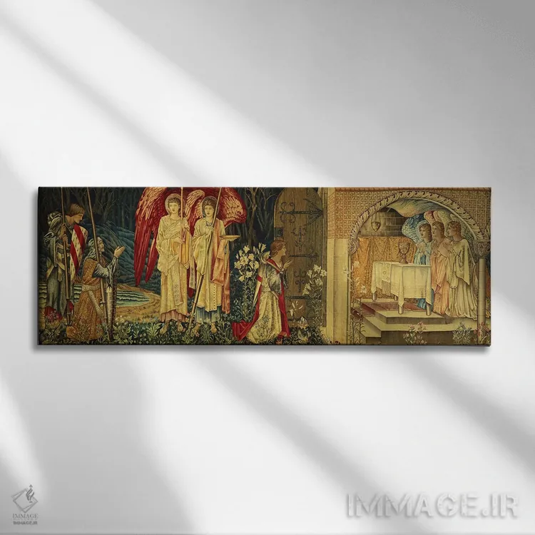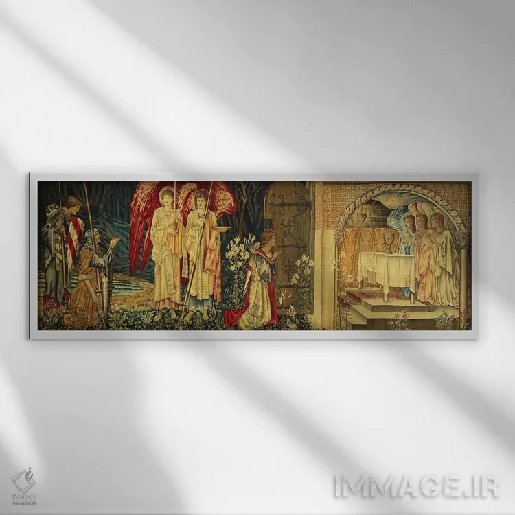تابلو Sir Bors and Sir Percival,دستیابی به جام مقدس توسط سر گالاهاد، سر بُرس و سر پرسیوال (اسطوره آرتوری) اثر سر ادوارد کولی برن-جونز (نقاش پیشارافائلی بریتانیا) - نمای روبه‌رو روی دیوار