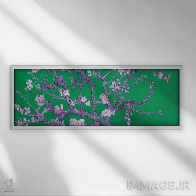 در «شکوفه بادام بر زمینه سبز» اثرِ «ونسان ون گوگ (نقاش مشهور هلندی پستامپرسیونیسم)»، گلها و گیاهان تعادل رنگیِ لطیفی به چیدمان میدهد؛ برای فضاهای بوهمی انتخابی خوشسلیقه است. جزئیاتش از نزدیک هم ارزش تماشا دارد.