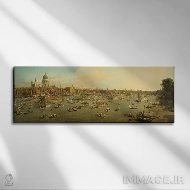 تابلو c.1747-8,رودخانه تیمز با کلیسای جامع سنت پل در روز شهردار لندن، حدود ۱۷۴۷-۴۸ اثر کانالتو (نقاش ایتالیایی ونیزی منظره)