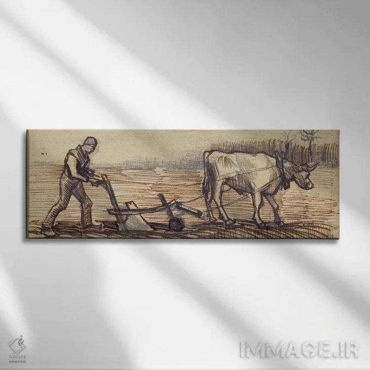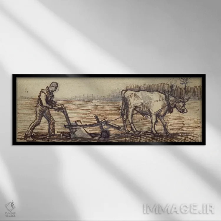تابلو from a series of four drawings representing the four seasons,در حال شخمزنی، از مجموعهای چهارگانه برای نمایش فصلها اثر ونسان ون گوگ (نقاش مشهور هلندی پستامپرسیونیسم)