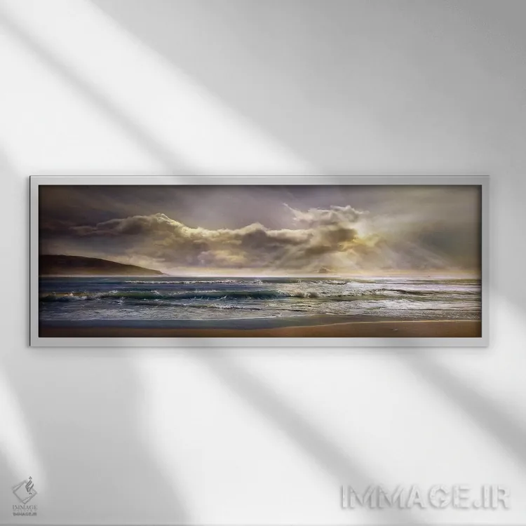 براساس پالت گرم اثر، قاب بلوط روشن (چوبی) پیشنهاد اول است و استخوانی ملایم مکمل. برای سفارشهای پروژهای با ابعاد و قابهای اختصاصی با ایماژ در تماس باشید.