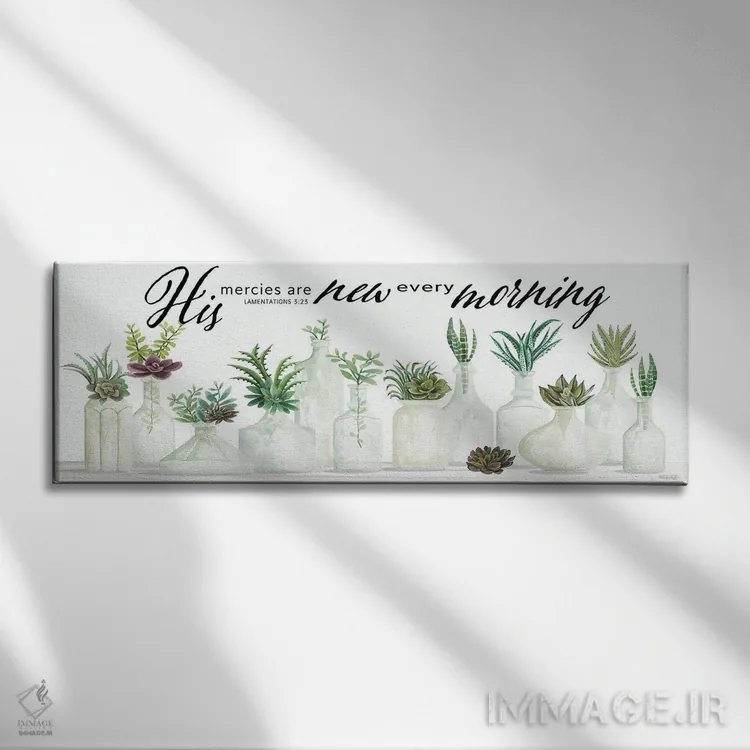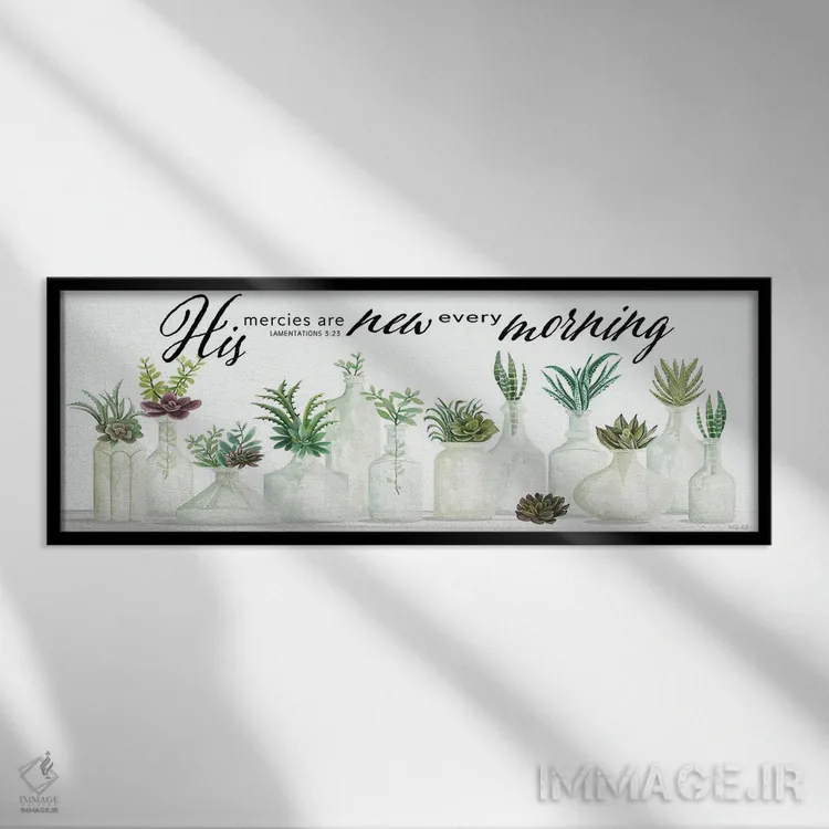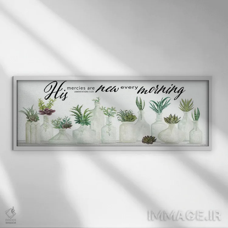 «مهربانیهایش هر صبح تازه است» اثرِ «سیندی جیکوبز» میتواند به دیوار، روشناییِ ملایم و دلنشین بدهد؛ برای فضاهای بوهمی پیشنهاد میشود. حضورش آرام است، اما بیاثر نیست.