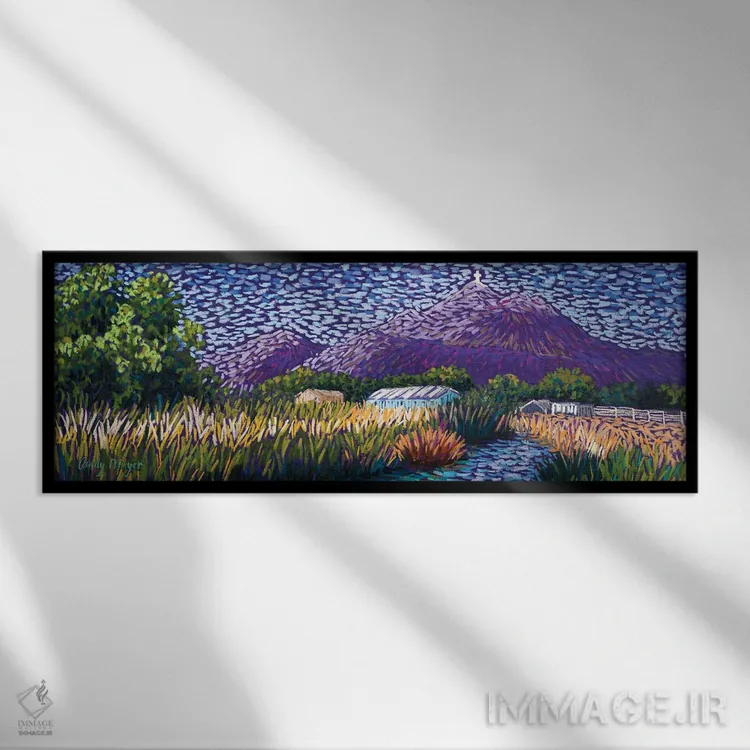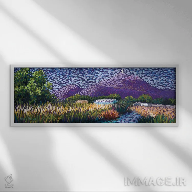 براساس پالت ترکیبی اثر، قاب تیک گرم (چوبی) پیشنهاد اول است و مشکی مات (فریم متوسط) مکمل. برای سفارشهای پروژهای با ابعاد و قابهای اختصاصی با ایماژ در تماس باشید.