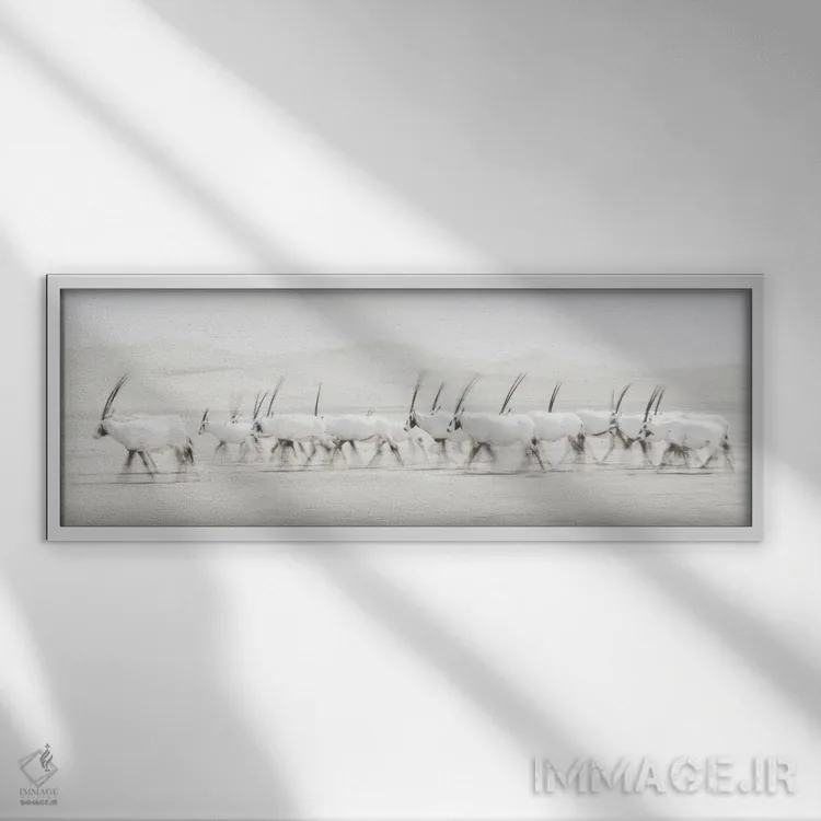 براساس پالت خنثی اثر، قاب مشکی مات (فریم باریک) پیشنهاد اول است و سفید مات (فریم باریک) مکمل. برای سفارشهای پروژهای با ابعاد و قابهای اختصاصی با ایماژ در تماس باشید.