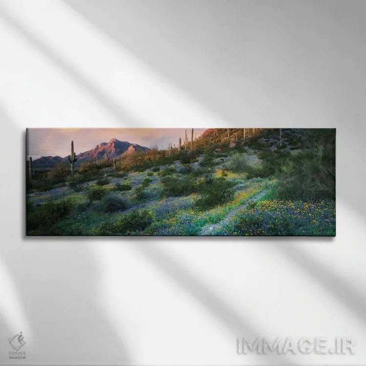در «پانورامای مسیر چشمهٔ بیابانی» اثرِ «دنیس فراتس»، گلها و گیاهان جزئیات نزدیک را چشمنواز نشان میدهد؛ برای کافهها و فضاهای آرام انتخابی خوشسلیقه است. همیشه بهروز میماند و با فصلها خوب کنار میآید.