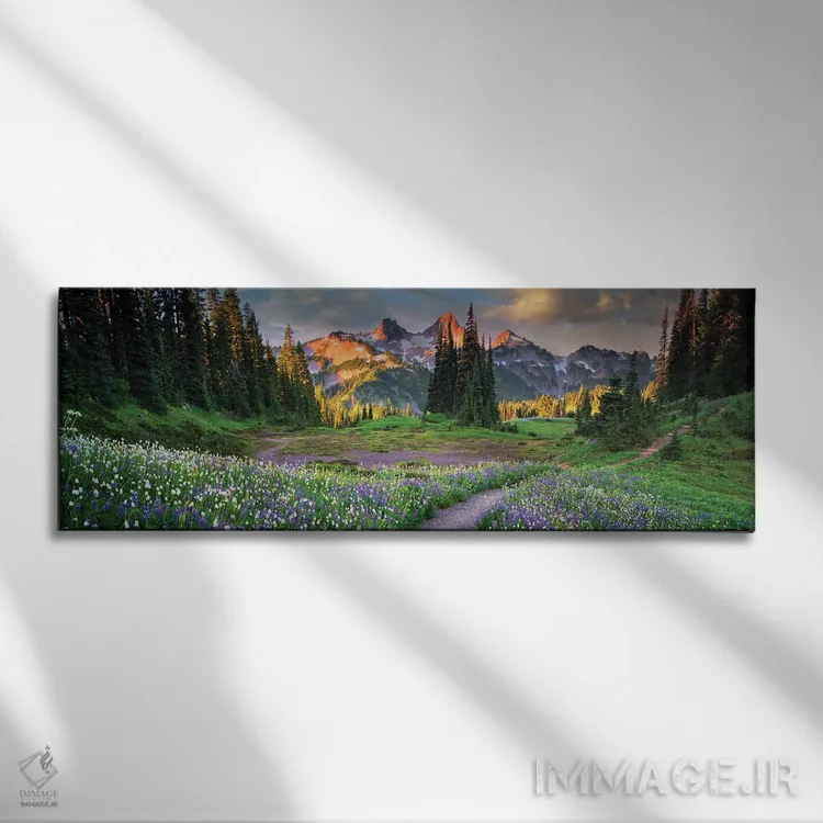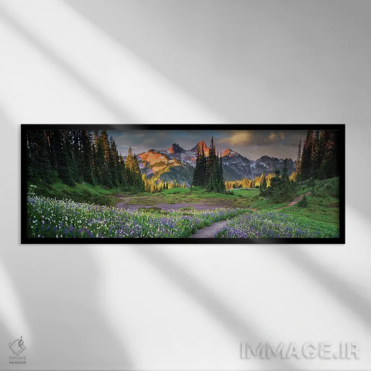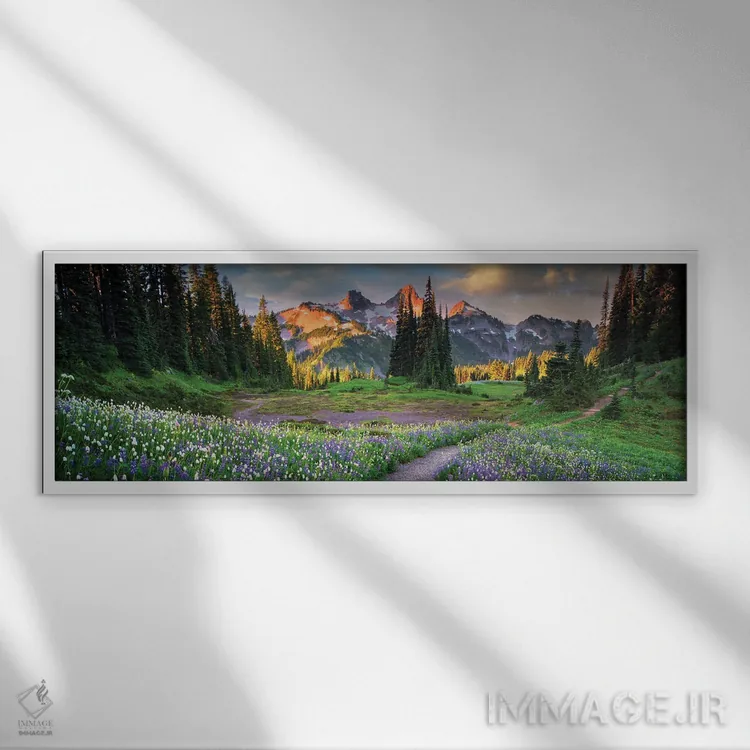 این تابلو با عنوان «منظرهٔ گلستان تاتوش (مسیر گلداری پانوراما)» اثرِ «دنیس فراتس» اتاق را جمعوجورتر و مرتبتر نشان میدهد؛ برای فضاهایی با نور طبیعی پیشنهاد میشود. حضورش روی دیوار «مرتب» است؛ نه پر سر و صدا، نه بیاثر.