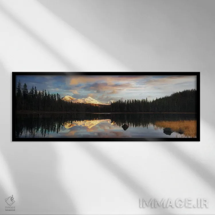 تابلو غروب دریاچه اسکات اثر دنیس فراتس - نمای قاب‌دار مشکی