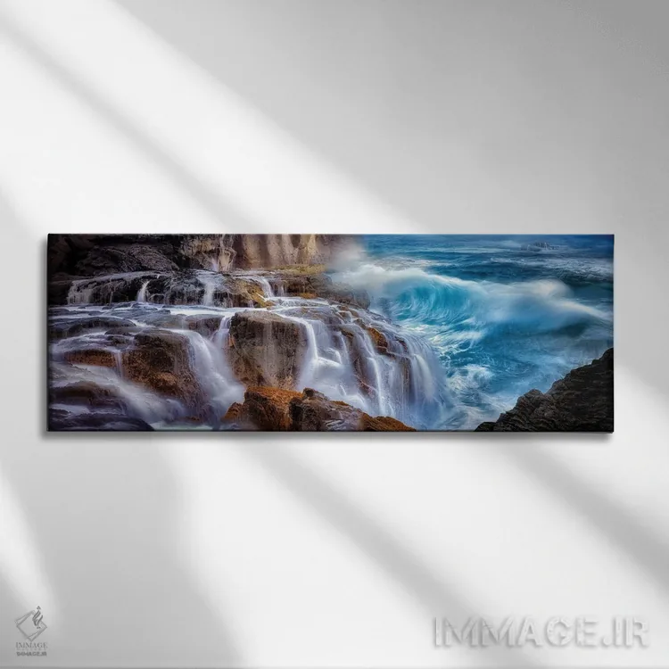 «آبشار موجی» اثرِ «دنیس فراتس» انتخابیست برای زمانی که جلوهٔ رنگها را طبیعیتر و متعادلتر نشان میدهد؛ برای دیوار بالای کنسول یا شومینه انتخابی عالی است. جزئیاتش نزدیکِ کار هم ارزش نگاه دارد.