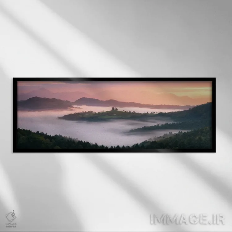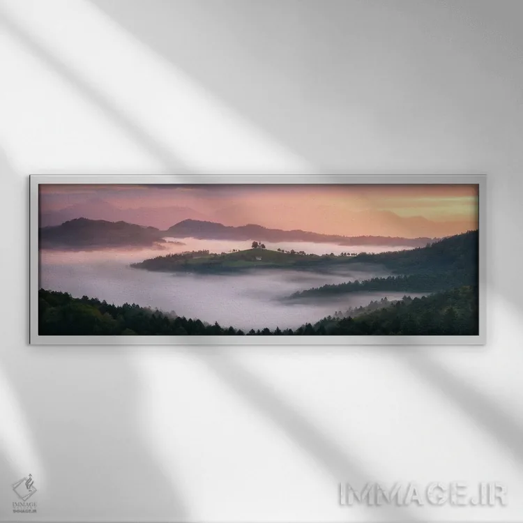 تابلو طلوع طلایی پاییزی در تپه‌های اسلوونی اثر دنیل گاستاگر - نمای قاب‌دار سفید