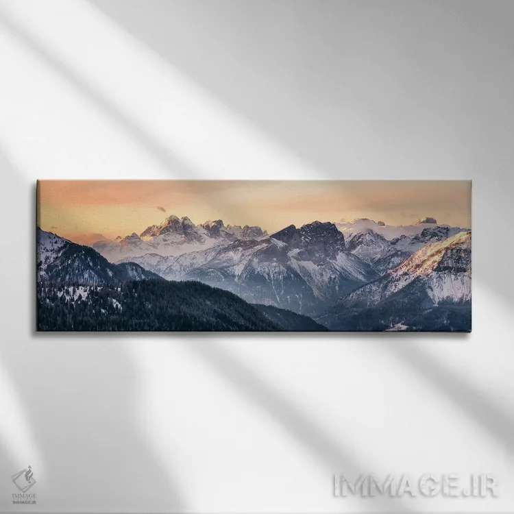 تابلو دکوراتیو پانورامای کوهستانی با طلوع زمستانی در دولومیت اثر دنیل گاستاگر