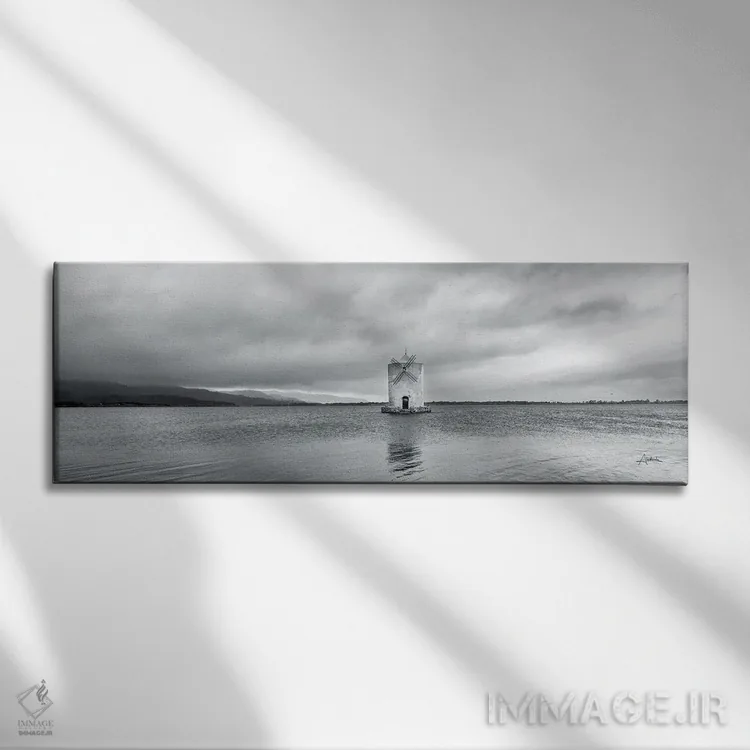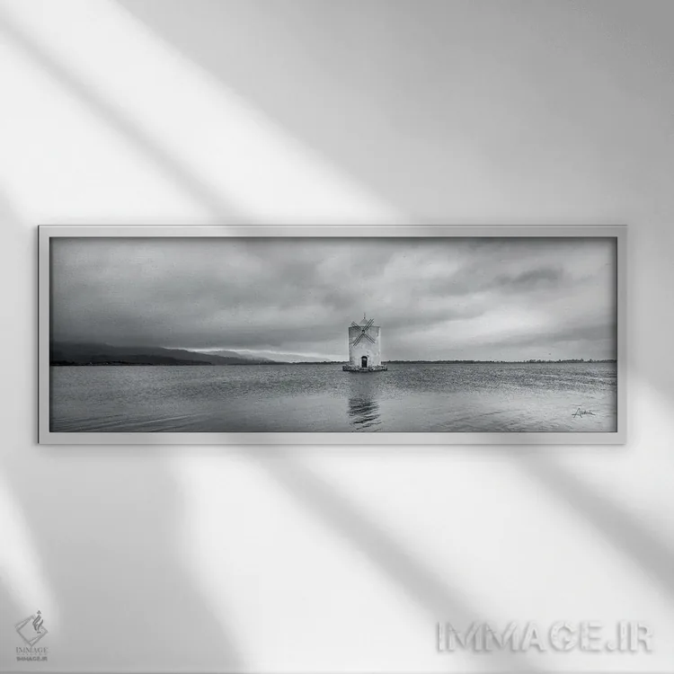 تابلو چراغ جزیره آسیاب بادی اثر الدندا - نمای قاب‌دار سفید