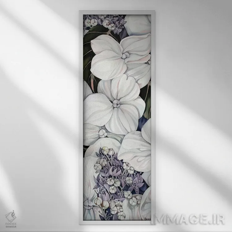 اگر محیط کمینهگرا است، سفید را در یک گلدان مینیمال کم و دقیق اضافه کنید تا نگاه به سمت اثر هدایت شود. اغراق لازم نیست.