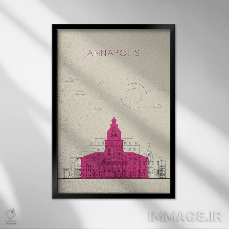 «نمای شهری آناپولیس، مریلند» اثرِ «آیشه دنیز آکِرمان» یک قاب شهری و مدرن است؛ موضوعِ این اثر با اجرای هنری، کنار مبلمان ساده خیلی خوب مینشیند.