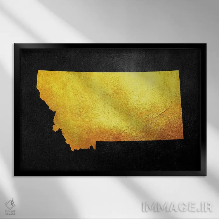تابلو نقشه طلایی مونتانا اثر آدریان بالدُوینو - نمای قاب‌دار مشکی