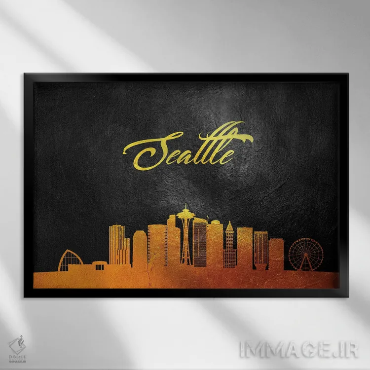 تابلو افق طلایی سیاتل واشینگتن اثر آدریان بالدُوینو - نمای قاب‌دار مشکی