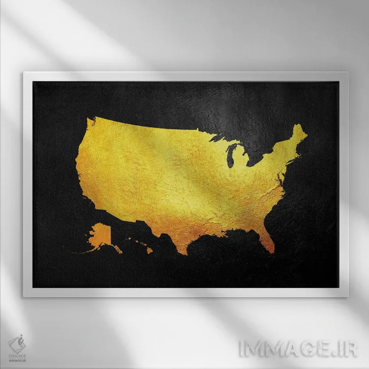 «نقشهٔ طلایی ایالات متحده آمریکا» اثرِ «آدریان بالدُوینو» یک قاب مدرن و خوشفرم است؛ موضوعِ این اثر در اجرای هنری خوانا و سئوپذیرِ دیواری میشود.
