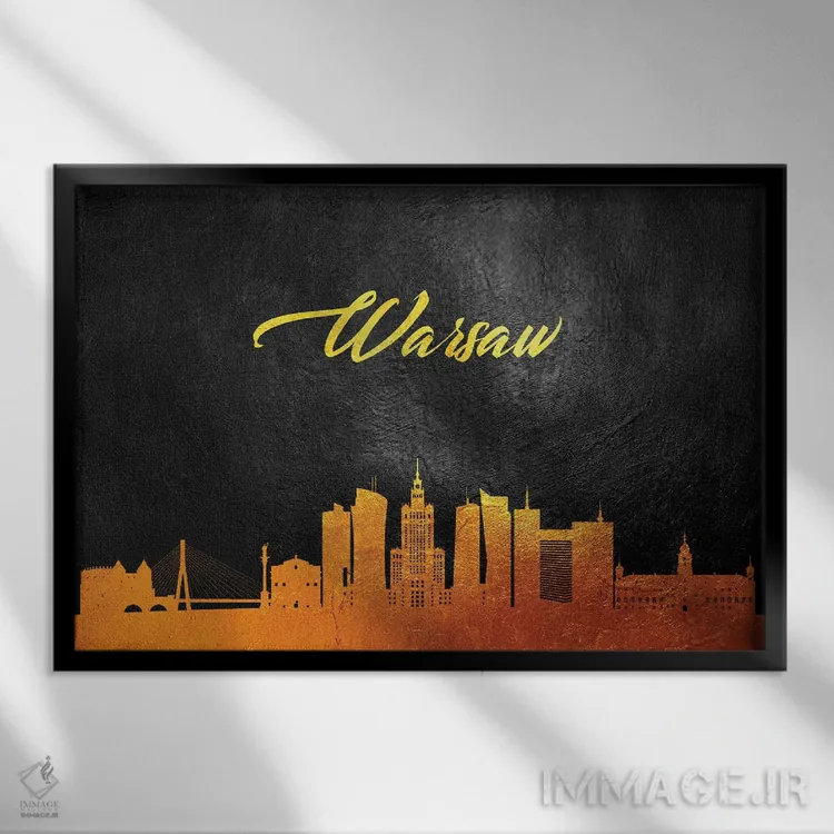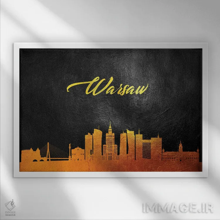 «خط افق طلایی ورشو، لهستان» اثرِ «آدریان بالدُوینو» با تایپوگرافیِ کنترلشده، روی دیوار خوب مینشیند؛ برای کنار کتابخانه، میز کار یا راهروهای باریک عالی است.