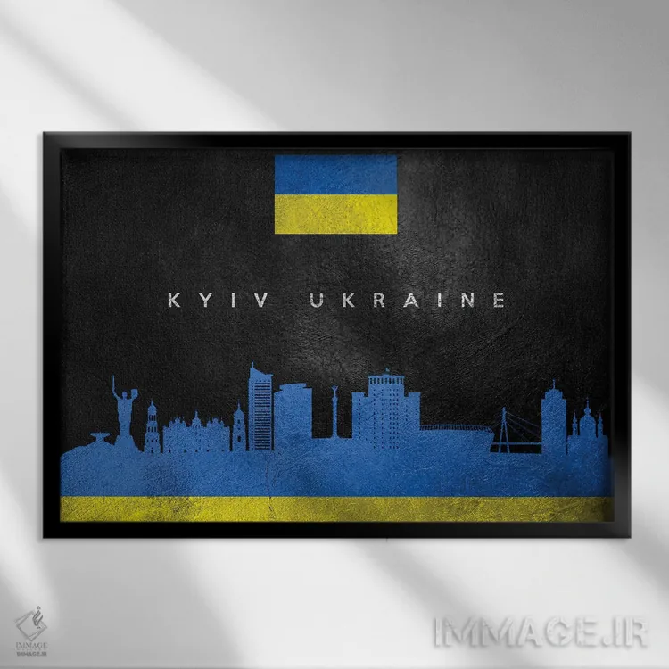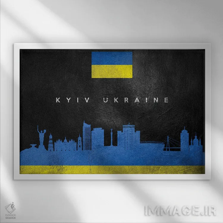 «خط افق کییف، اوکراین» اثرِ «آدریان بالدُوینو» یک قاب تایپوگرافیک است که ریتم فضا را منظم نگه میدارد؛ برای دیوارهای سفید و چیدمانهای ساده، گزینهی خوبی است.