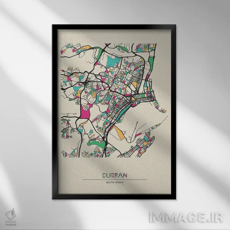 «نقشه دوربان، آفریقای جنوبی» اثرِ «آیشه دنیز آکِرمان» یک لهجهی مدرن برای ترکیبهای خاکستری/سفید و نور سرد است.