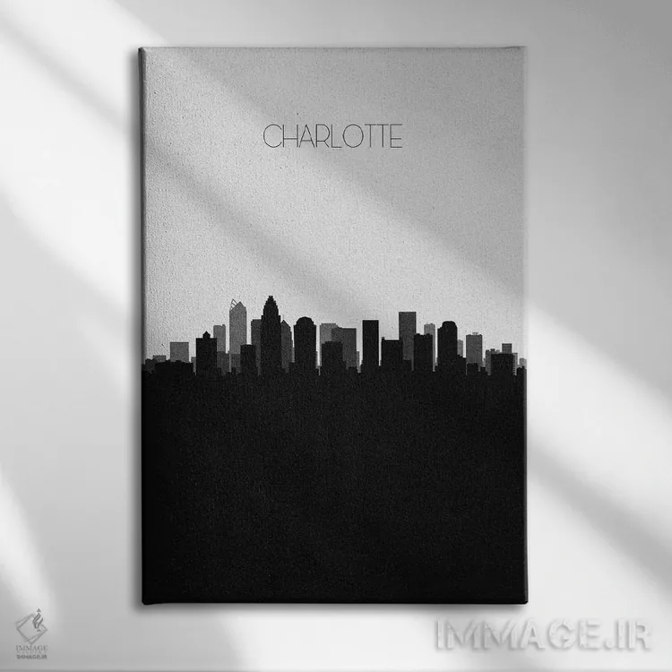 اگر دکور شما مدرن و کمرنگ است، «نما و افق شهری شارلوت، کارولینای شمالی» اثرِ «آیشه دنیز آکِرمان» با موضوعِ این اثر در فضای دیجیتال سیاهوسفید گزینهی خوبی است.