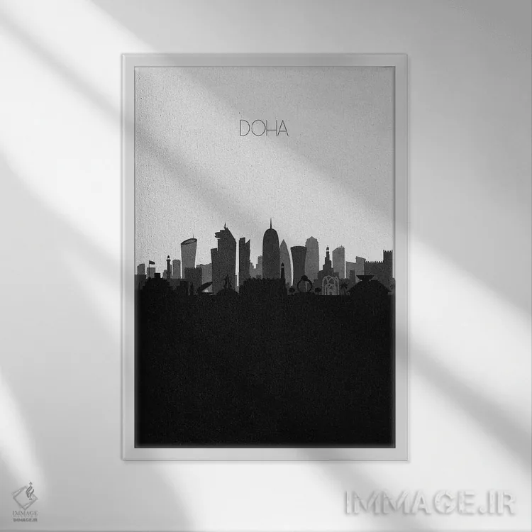 «خط افق شهر دوحه، قطر» اثرِ «آیشه دنیز آکِرمان» یک قاب مدرن و کنترلشده است؛ سیاهوسفیدِ دیجیتال کمک میکند موضوعِ این اثر در فضاهای ساده بدرخشد.