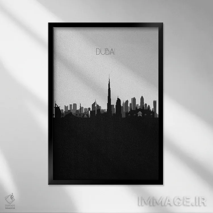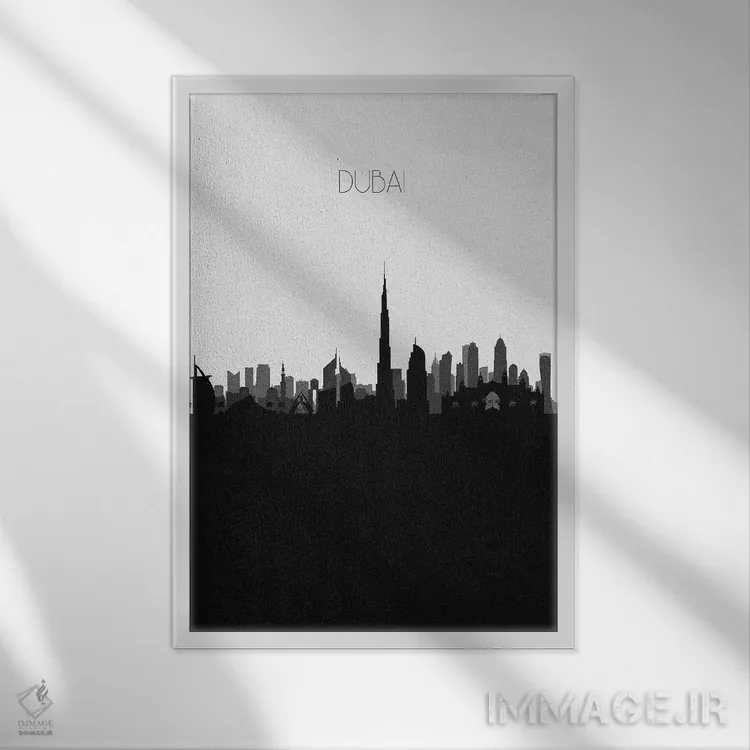 «خط افق شهر دبی، امارات متحده عربی» اثرِ «آیشه دنیز آکِرمان» با حالوهوای هنر دیجیتال سیاهوسفید، برای فضاهای مدرن و مینیمال انتخابی دقیق و امروزی است.