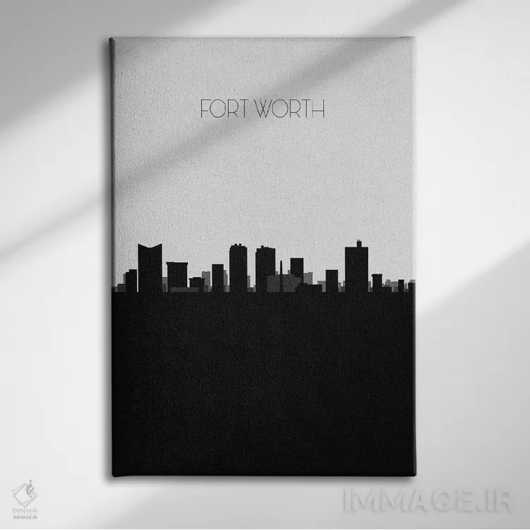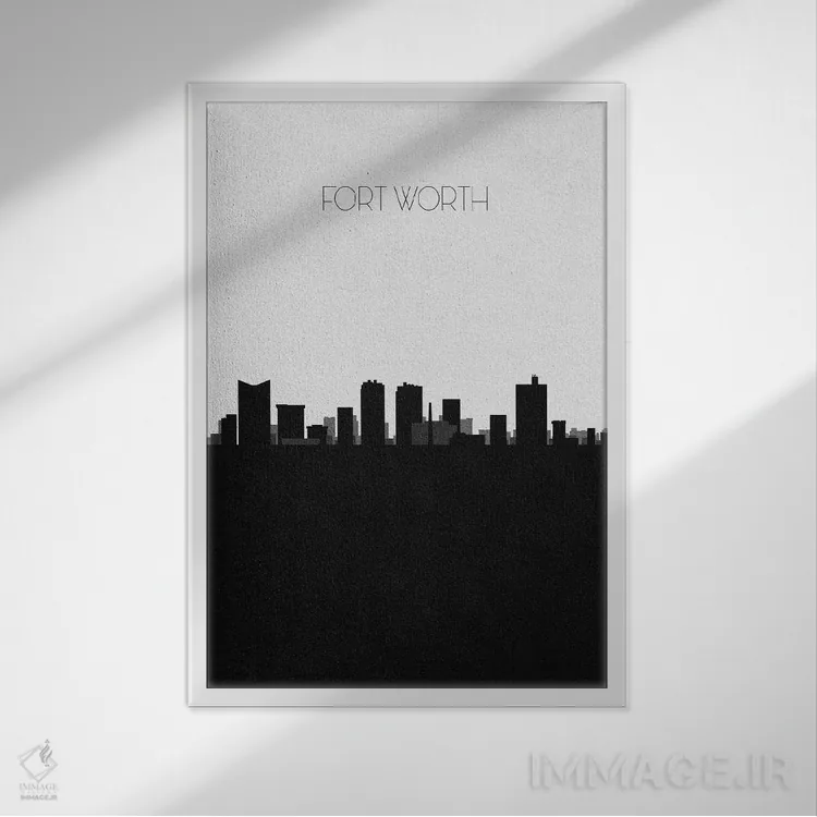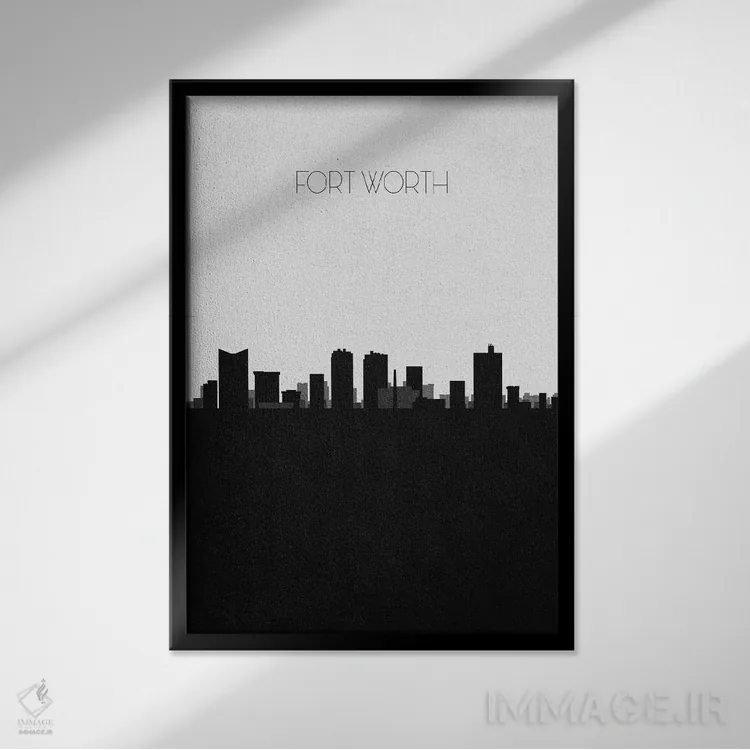 «خط افق شهر فورت ورث، تگزاس» اثرِ «آیشه دنیز آکِرمان» با حالوهوای هنر دیجیتال سیاهوسفید، برای فضاهای مدرن و مینیمال انتخابی دقیق و امروزی است.